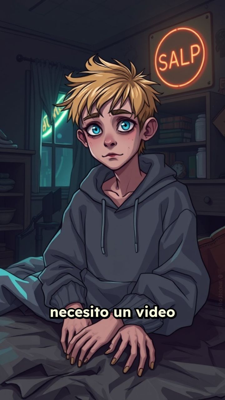 necesito un video dondenle personaje principal se vea cansado ojeeroso y con los ojos un