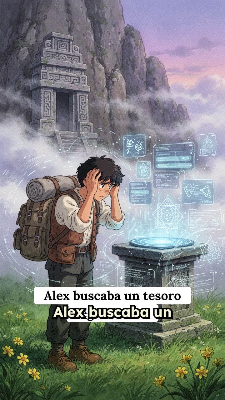 Alex buscaba un tesoro legendario escondido entre las altas cumbres nubladas. Su mapa lo