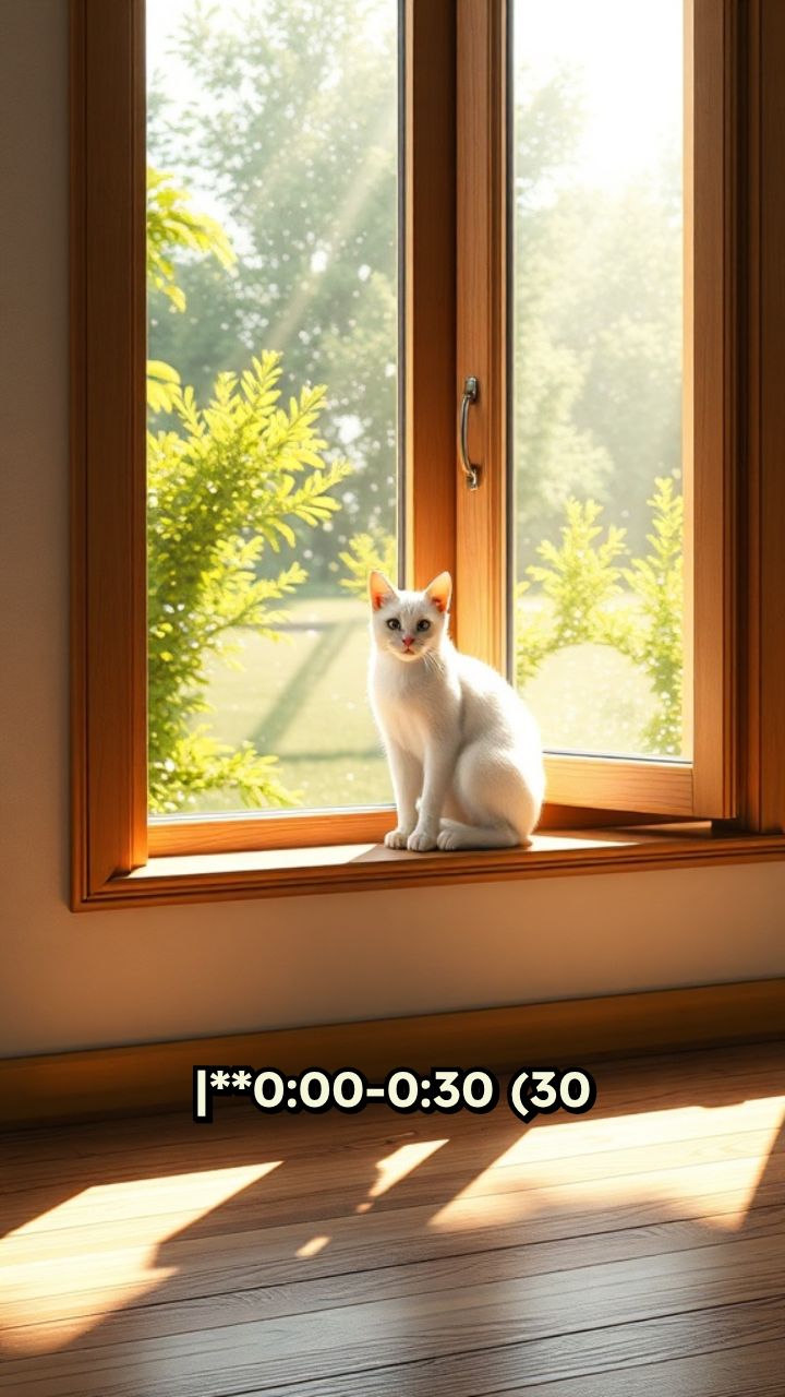 |**0:00-0:30 (30 seg)**|- Fondo: Ventana con luz solar. Luna (gata blanca)