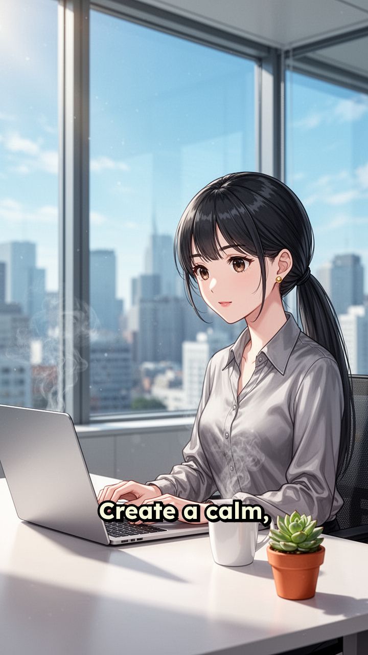 calm workspaces, and organized digital environments. Add smooth transitions, light motion graphics,