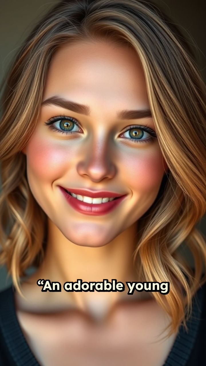 “An adorable young woman with a warm smile, wearing a stylish linen jacket,