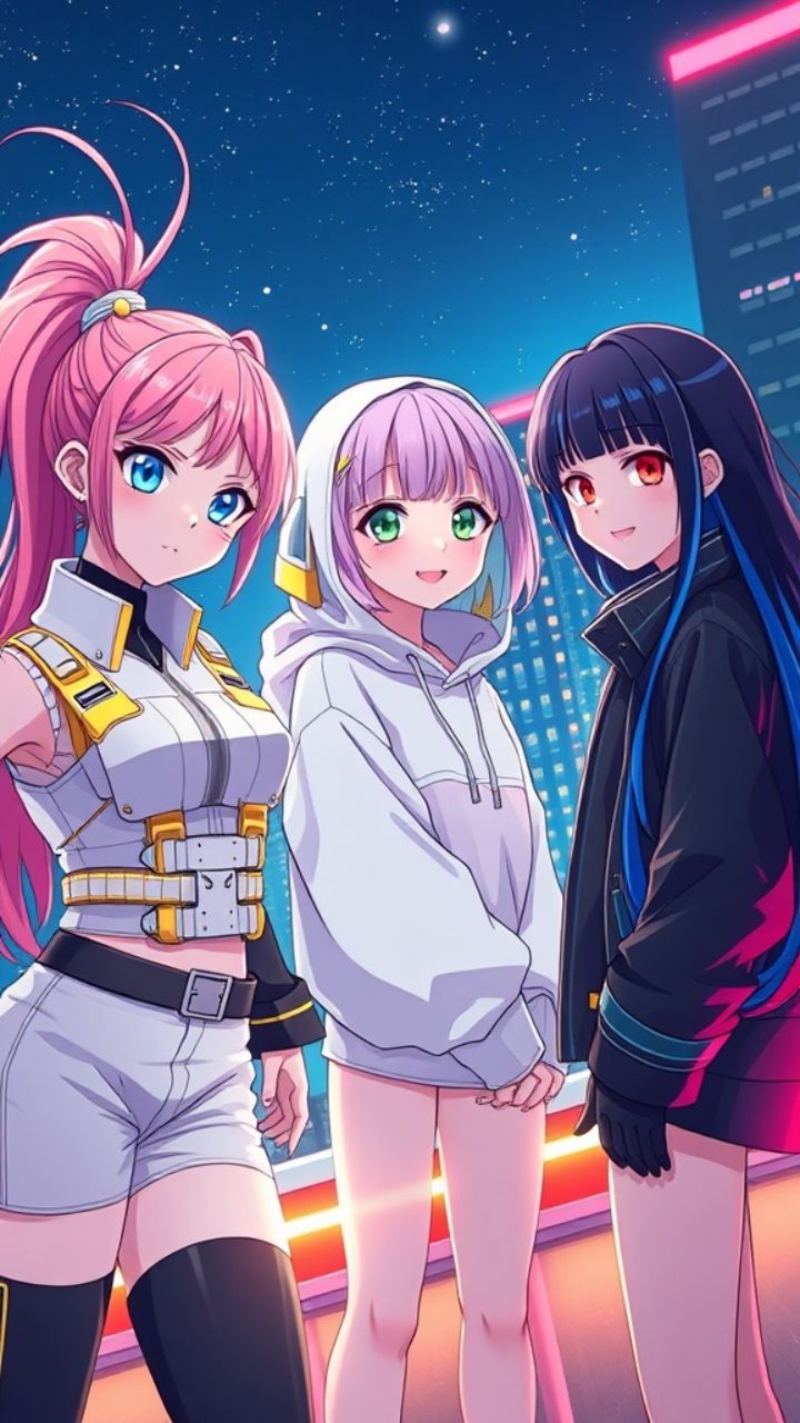 pop colorful youth anthems. Upbeat dance ballad slang. Style anime in