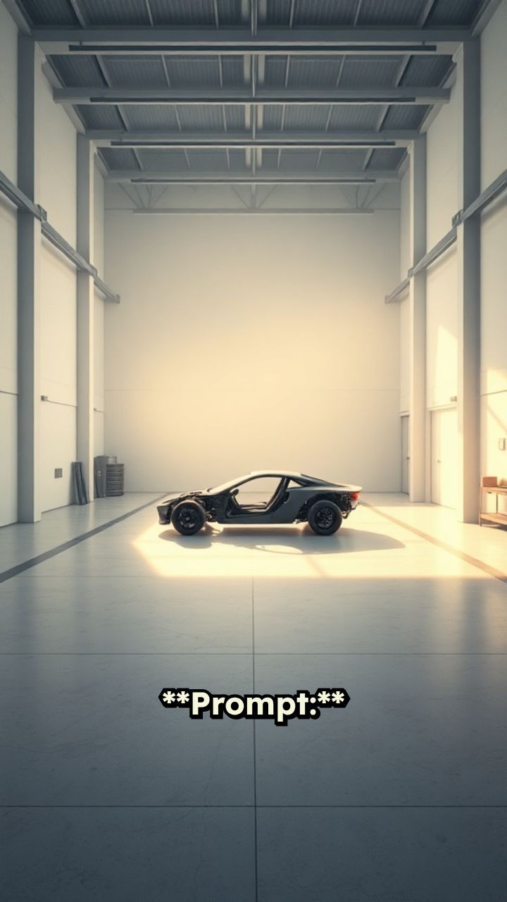 **Prompt:** An anime-style visual sequence in a timeless, minimalist automotive workshop illuminated