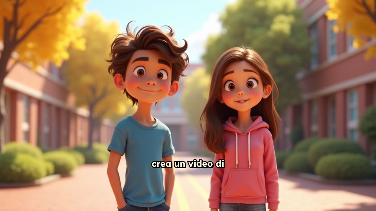 crea un video di due ragazzi (lui castano con gli occhi marroni ed i capelli di media