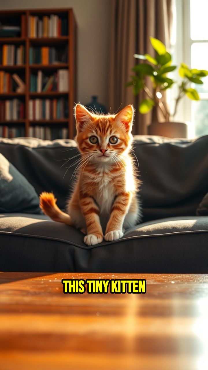 This tiny kitten went from trembling under a car to ruling the couch in a single afternoon.