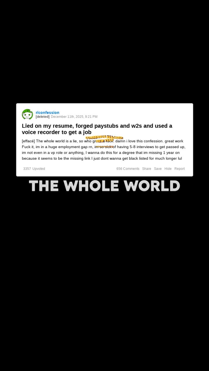 The whole world is a lie, so who gives a fuck. Damn I love this confession.