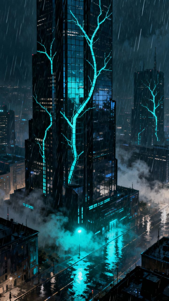 Glowing Veins in a City Storm