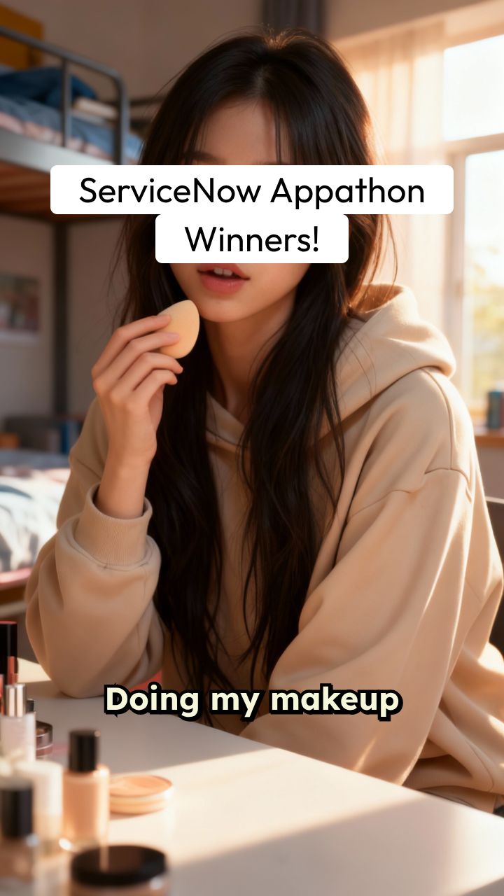 Doing my makeup but omg… my team actually won the ServiceNow Appathon! The craziest 12