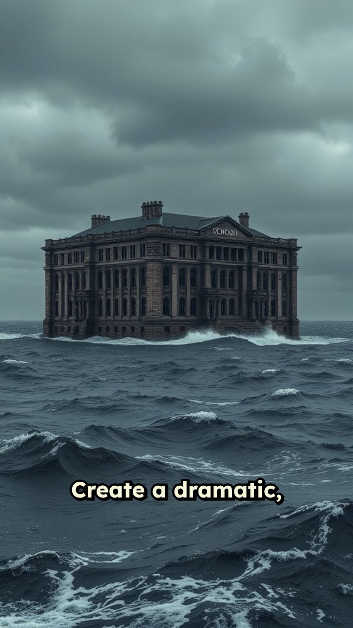 alone in the middle of a dark, stormy sea. The school looks haunted and abandoned,