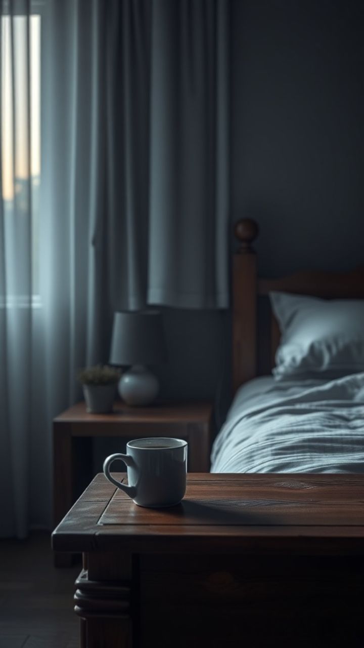 Mmm. She wakes before the sunlight, coffee cold before she sip.