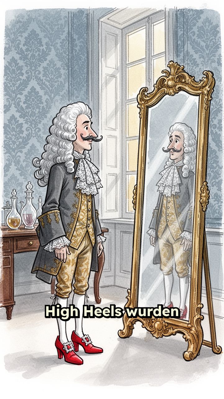 wie Ludwig XIV. hohe Schuhe als Zeichen von Männlichkeit und Macht. Erst viel später