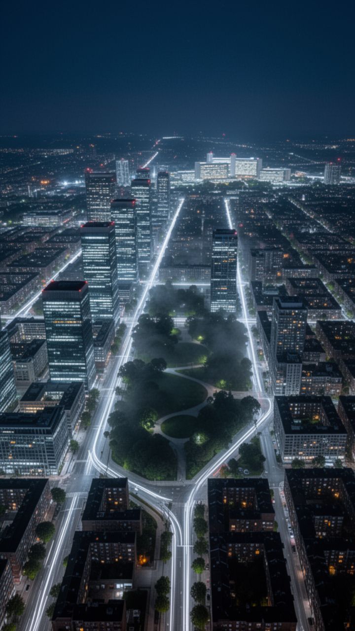 While the city sleeps under pale white lights I walk the halls through endless