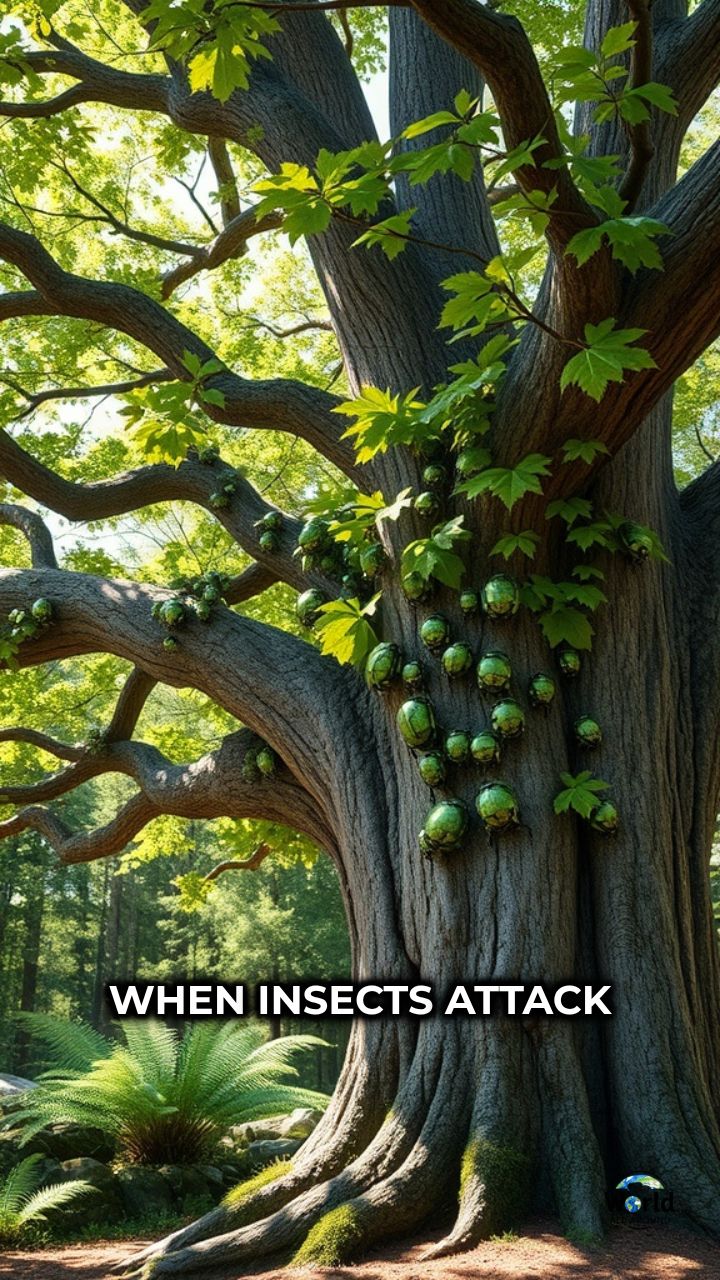 When insects attack a tree, it doesn’t just defend itself. Many trees release