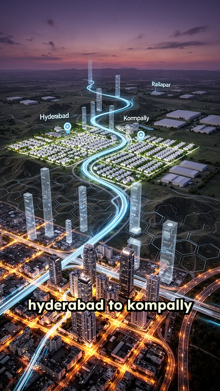 hyderabad to kompally to railapur road map ai video