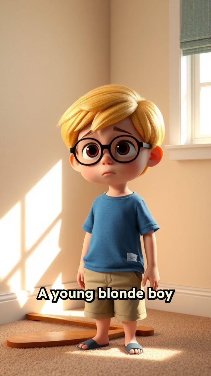A young blonde boy with glasses is crying. He is standing in the corner of the