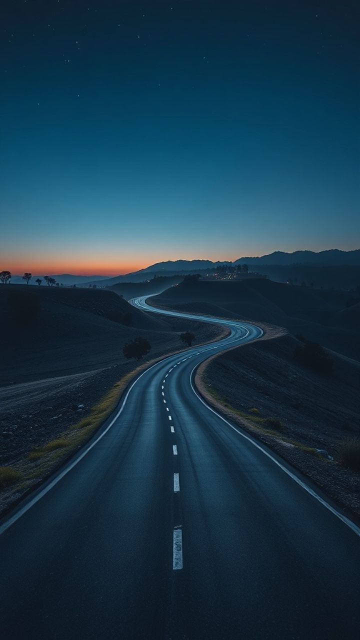 A estrada abre-se devagar. Linha branca a desaparecer. O motor canta