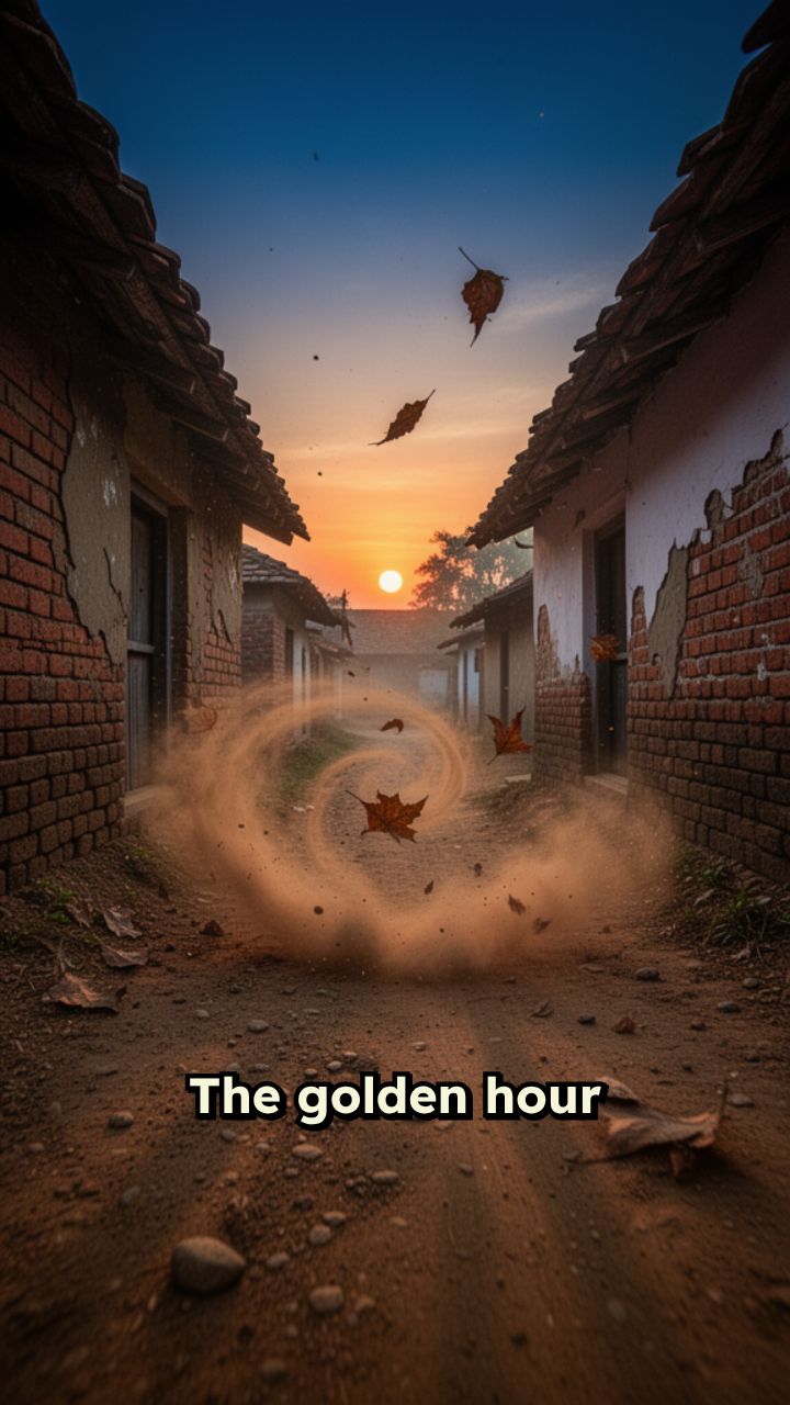 The golden hour fades as rural winds howl through the forgotten streets of a lonely