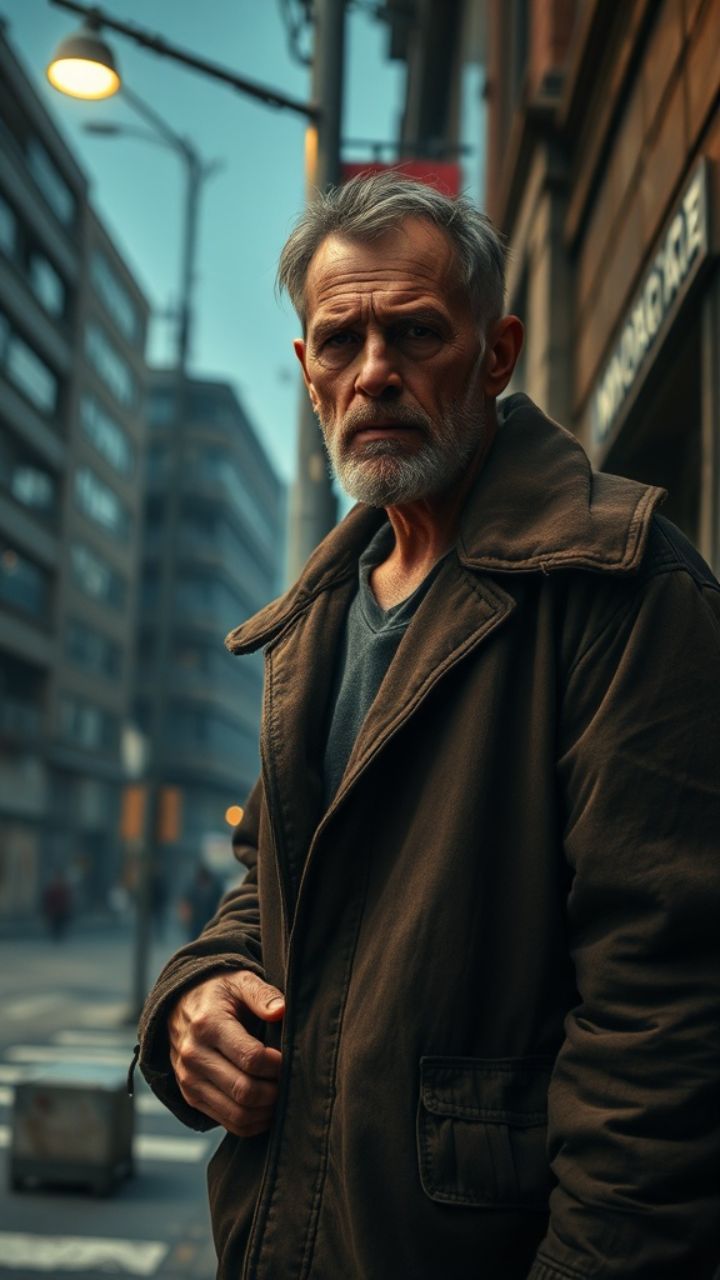 Na rogu stał w starej kurtce. Pachniał dymem i smrodem wódki. Oczy miał jak