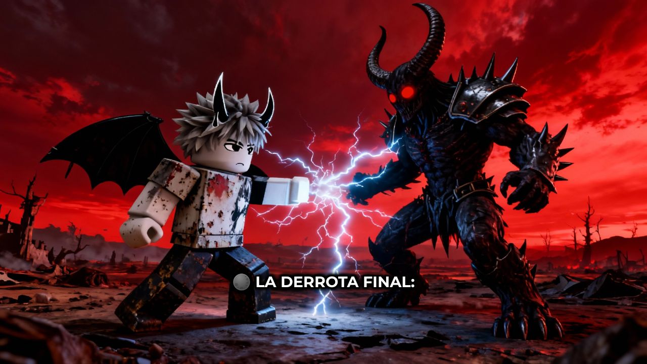 de Shadow, el mutante supremo, el rey de los Brainrots. Frente a él, golpeado,