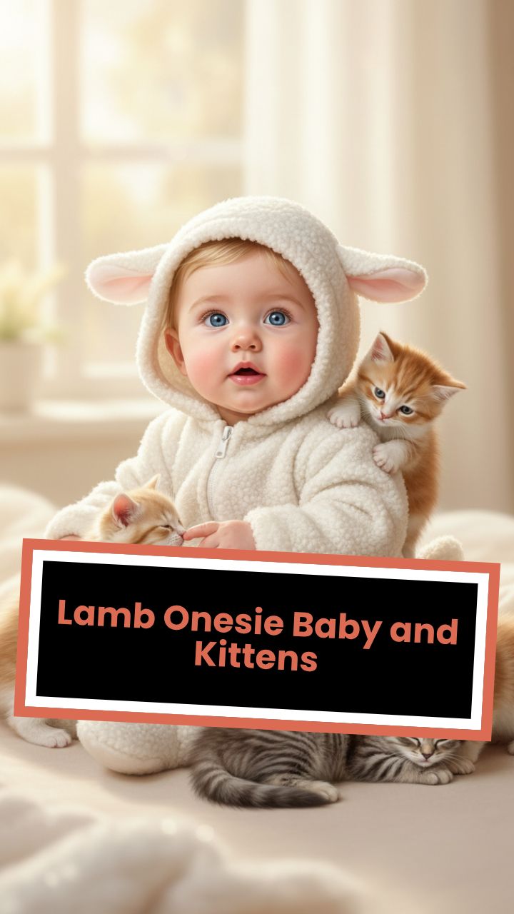 Lamb Onesie Baby and Kittens