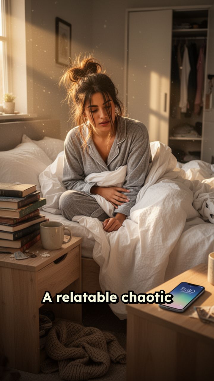 A relatable chaotic morning routine GRWM of an ordinary young adult in a cozy but messy apartment