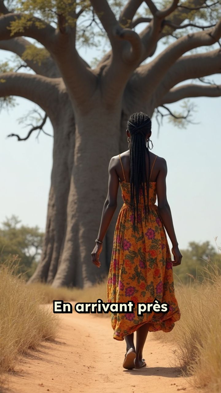 En arrivant près du vieux baobab, l'arbre sacré du village, Adama a aperçu un