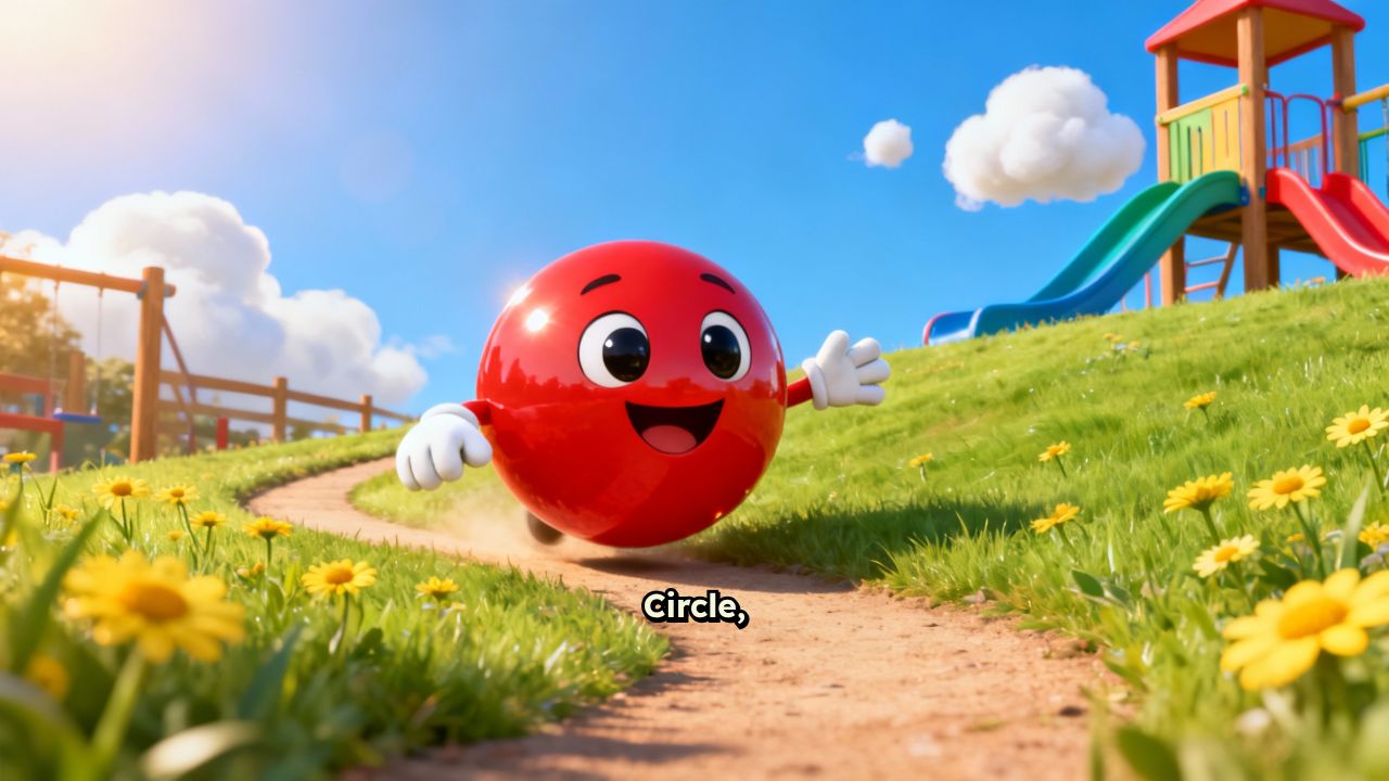 Circle, circle, round and round, like a ball that rolls on the ground.