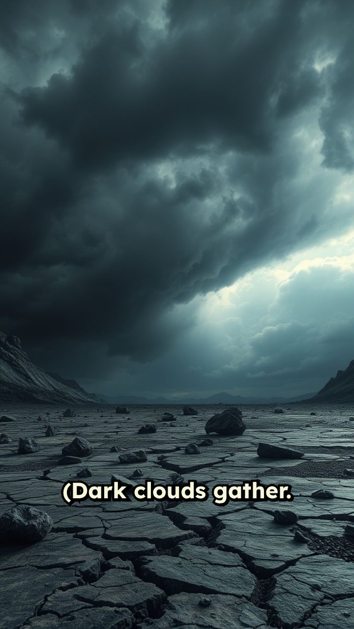 (Dark clouds gather. The ground trembles as two immense powers collide.) Narrator: