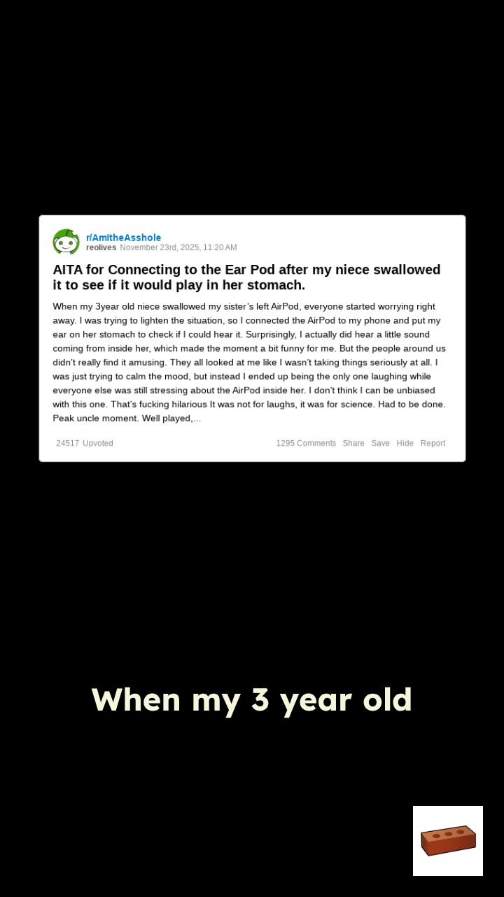 When my 3 year old niece swallowed my sister's left AirPod, everyone started