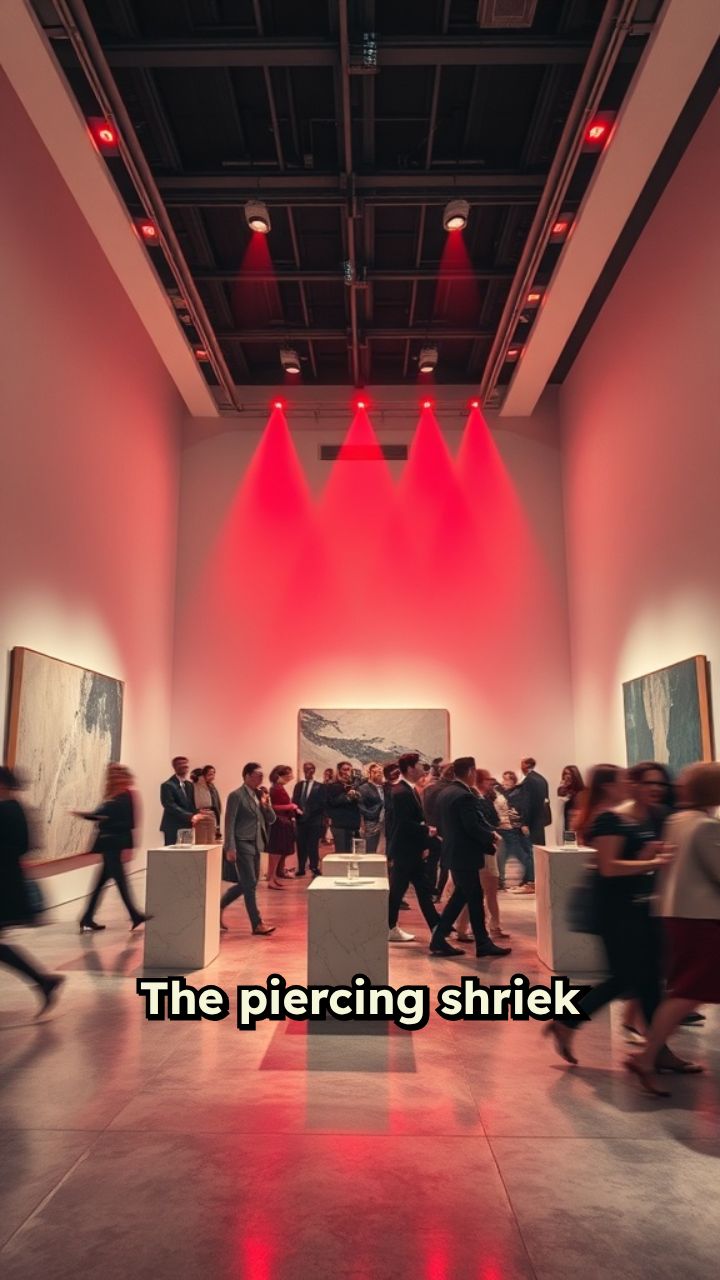 The piercing shriek of the security alarm turned the quiet gallery into a war zone of red