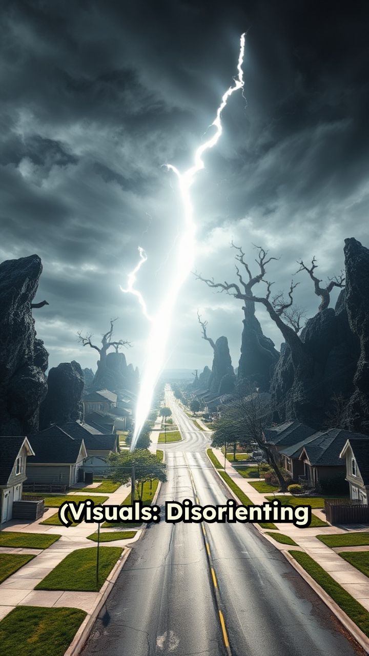 (Visuals: Disorienting flash, mundane to dark landscape) NARRATOR: He wasn't