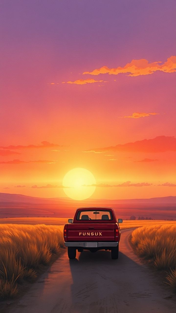 I see sunset. Shining on the back of your truck. Yeah,
