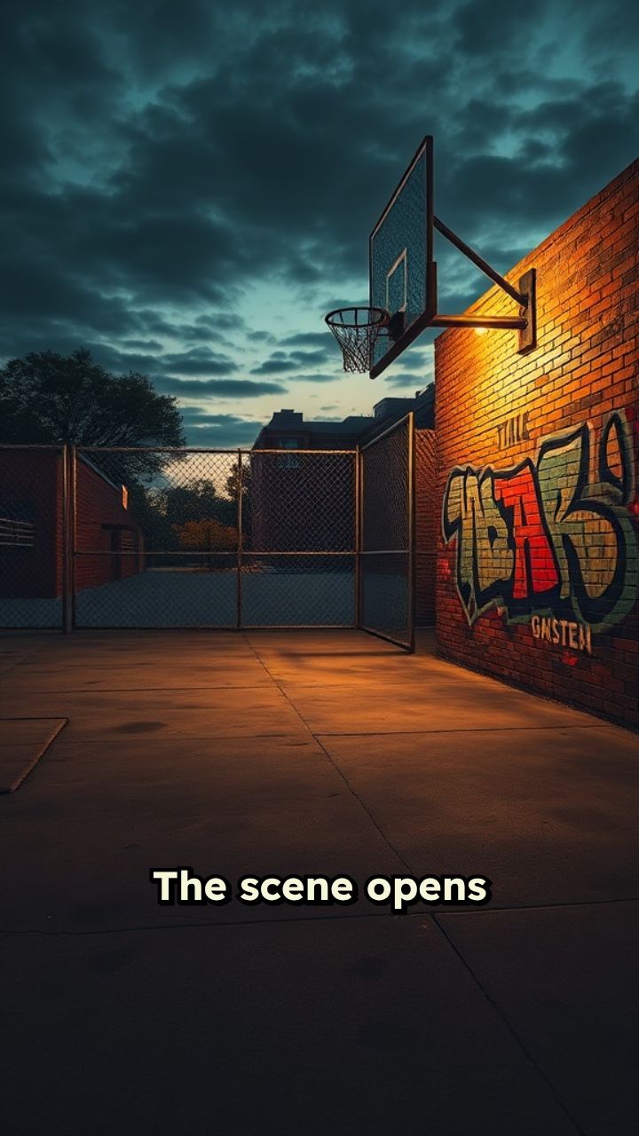 The scene opens with a dimly lit schoolyard, the last rays of daylight fading