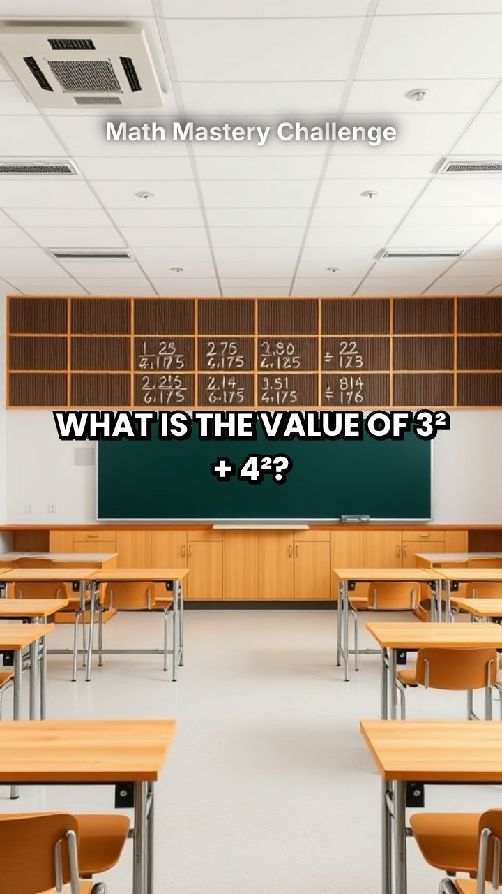 What is the value of 3² + 4²? Solve: 2x + 5 = 15 What is the formula for the area of a triangle? If the perimeter of a square is 20 cm, what is the length of one side?