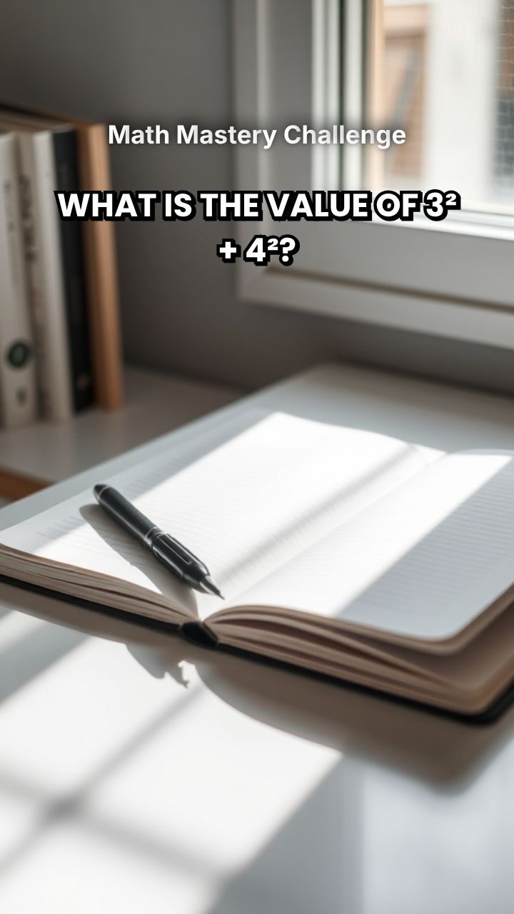 What is the value of 3² + 4²? Solve: 2x + 5 = 15 What is the formula for the area of a triangle? If the perimeter of a square is 20 cm, what is the length of one side?