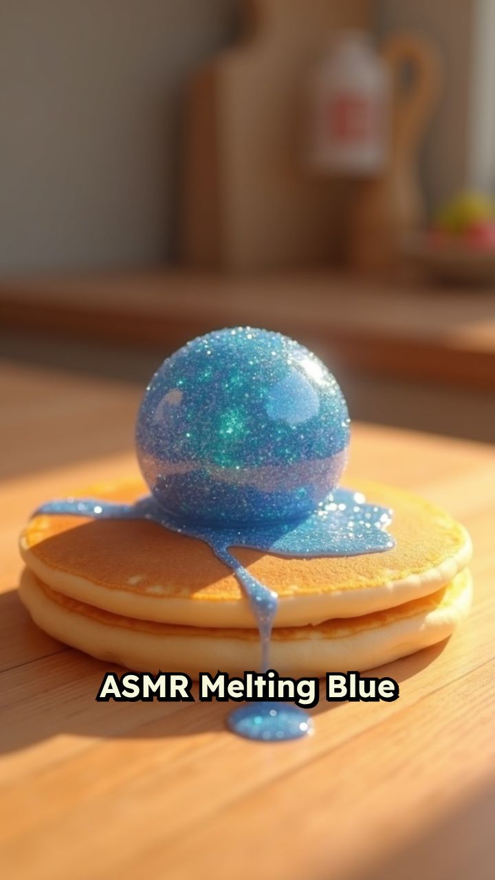 ASMR Melting Blue beads Orb on Pancake
