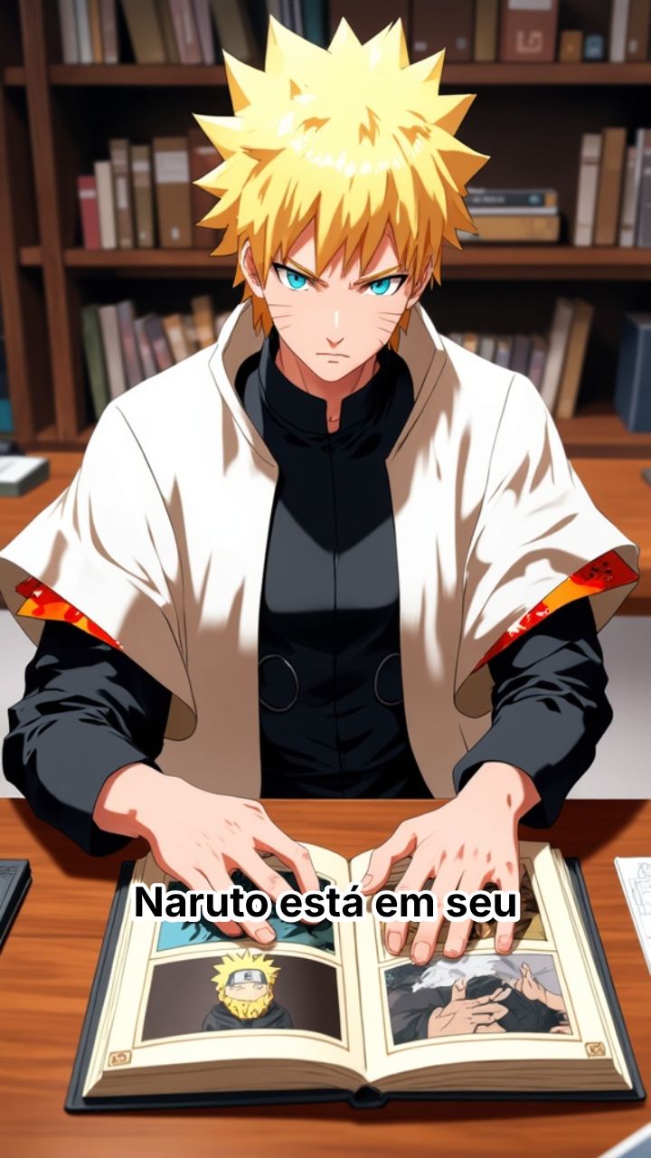 Naruto está em seu escritório, folheando um álbum de fotos. As imagens de seus