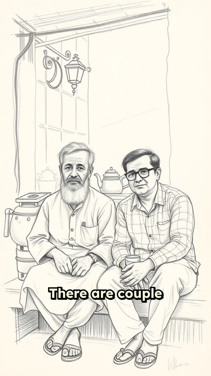 There are couple of people sitting and gossiping outside of a tea stall. Suddenly there is