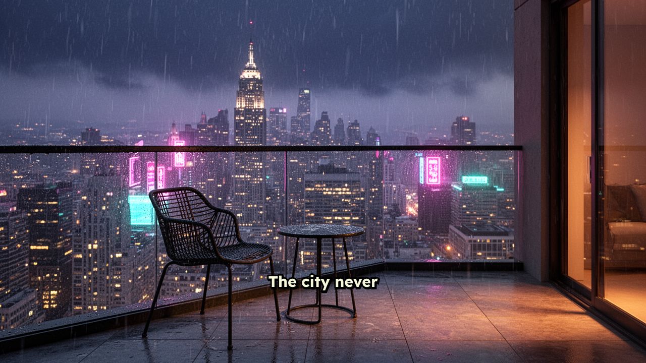 Time seems to stretch here, caught between the falling rain and the blinking lights