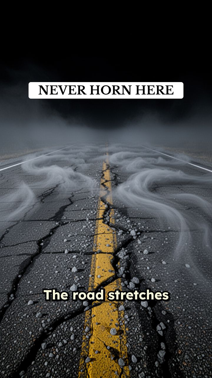The road stretches forever, swallowed by the thick, rolling fog of