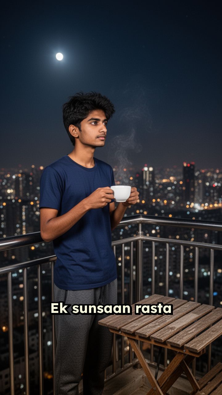 Ek sunsaan rasta ya balcony. Hero (tum) chai pee raha hai, ekdum sukoon mein.Flashback
