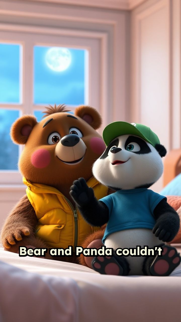 Bear and Panda couldn't sleep the night before their mountain picnic because the excitement was too