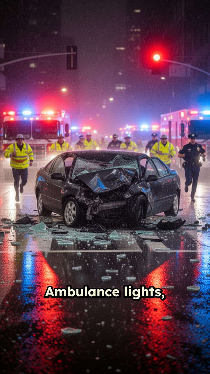 Ambulance lights, people running near. We shouted, "We're fine," but they couldn't hear.