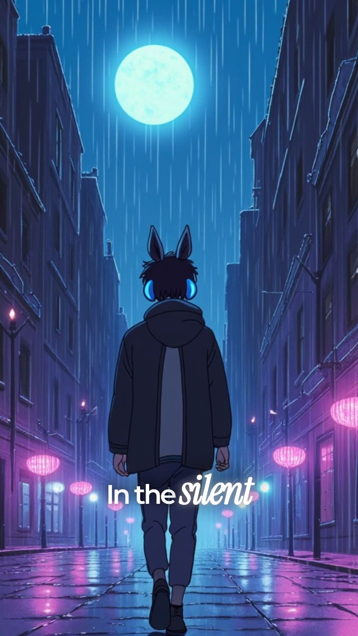 In the silent hum of the city, he walks alone, a figure in