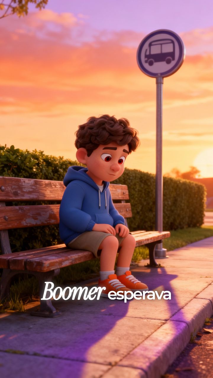 Boomer esperava o ônibus pensando nos próprios problemas. O frio subiu pelos pés.