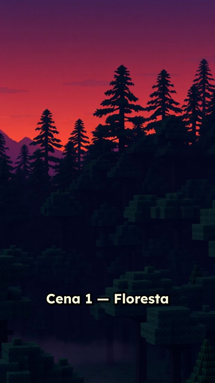 Cena 1 — Floresta sombria ao entardecer Narração: "Eu estava explorando uma floresta estranhamente
