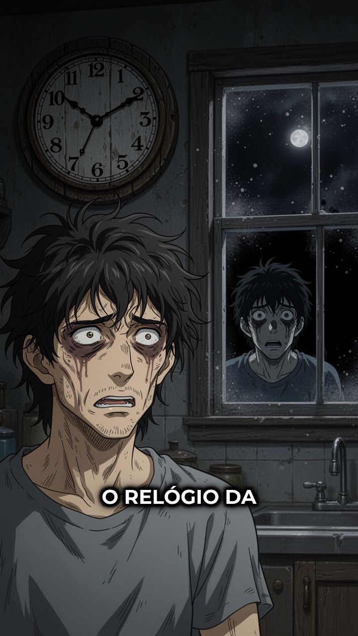 O relógio da cozinha parou às 23:17. O silêncio era denso e viscoso.