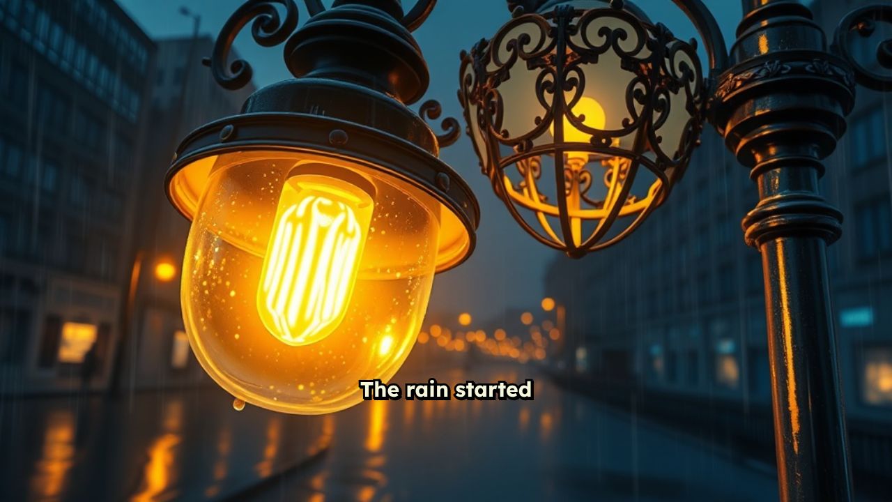 The rain started like a whisper, then turned the city into a glass instrument—every