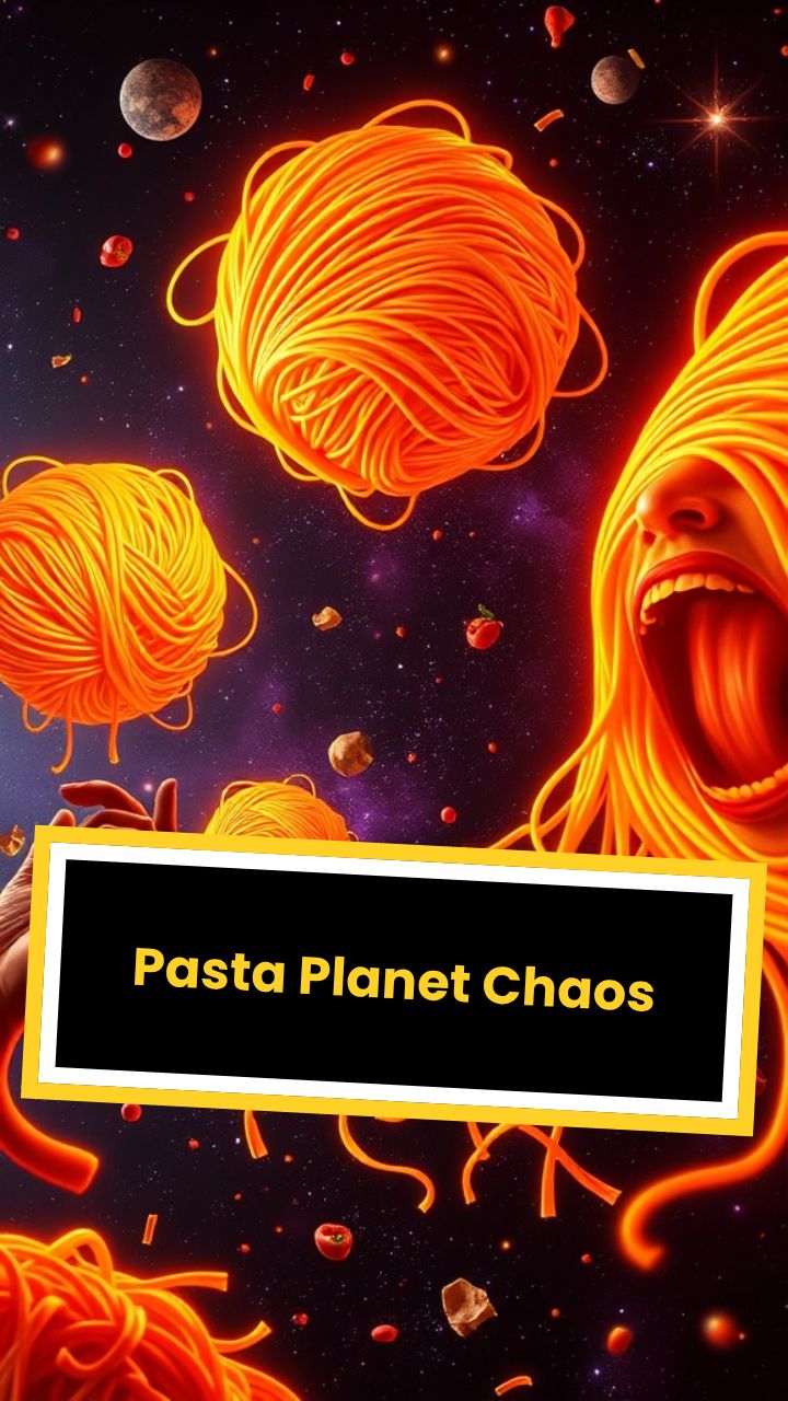 Ultra-fast Italian brainrot style, chaotic multiverse of spaghetti laws, glowing pasta planets