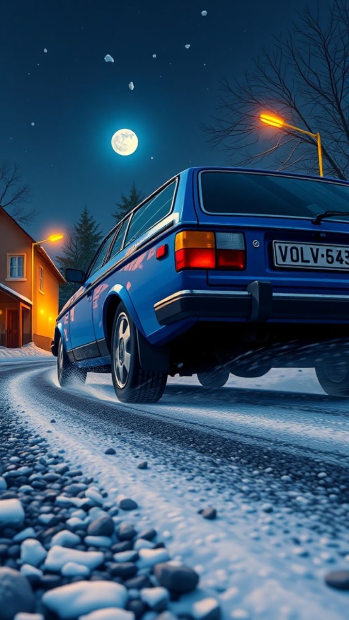 Kickar upp gruset, snön flyger upp. Fulltank, full volym, inget stopp.